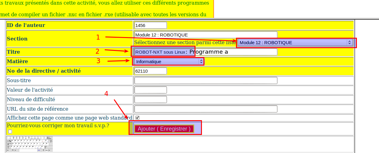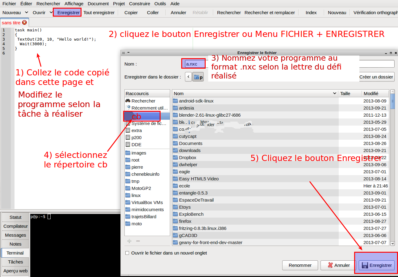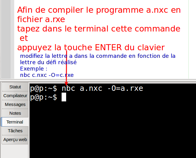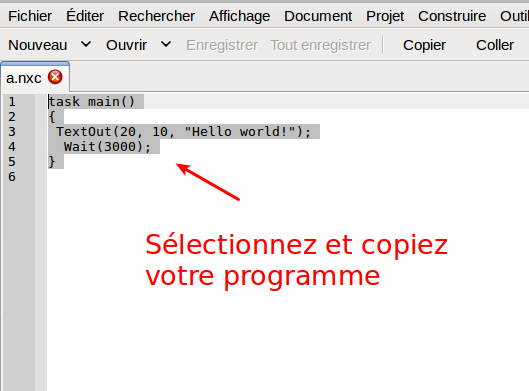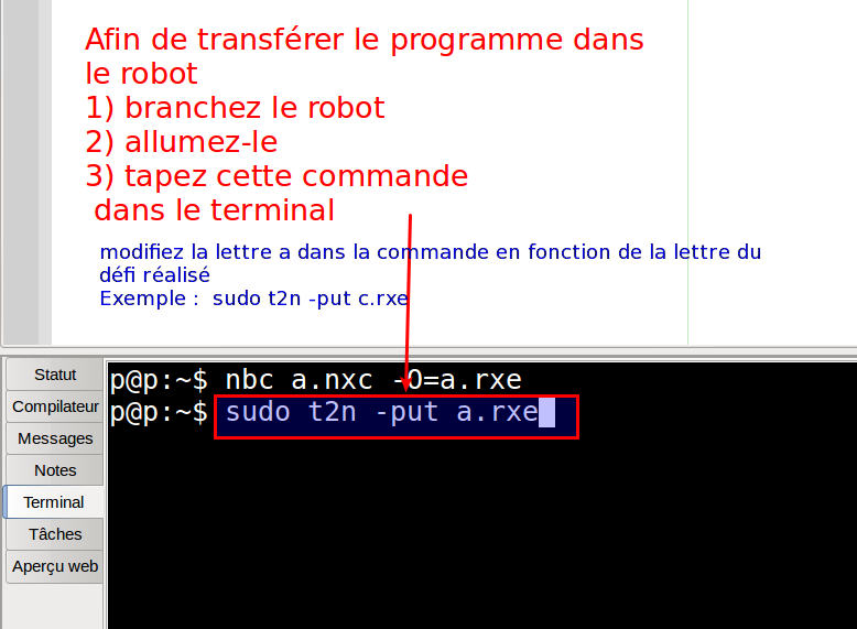 - Téléchargez le fichier .rxe dans le robot et testez votre programme