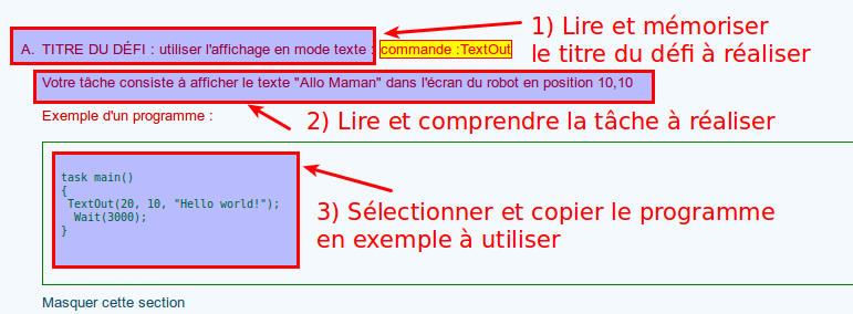 - Modifiez le code de votre programme en fonction de la tâche demandée