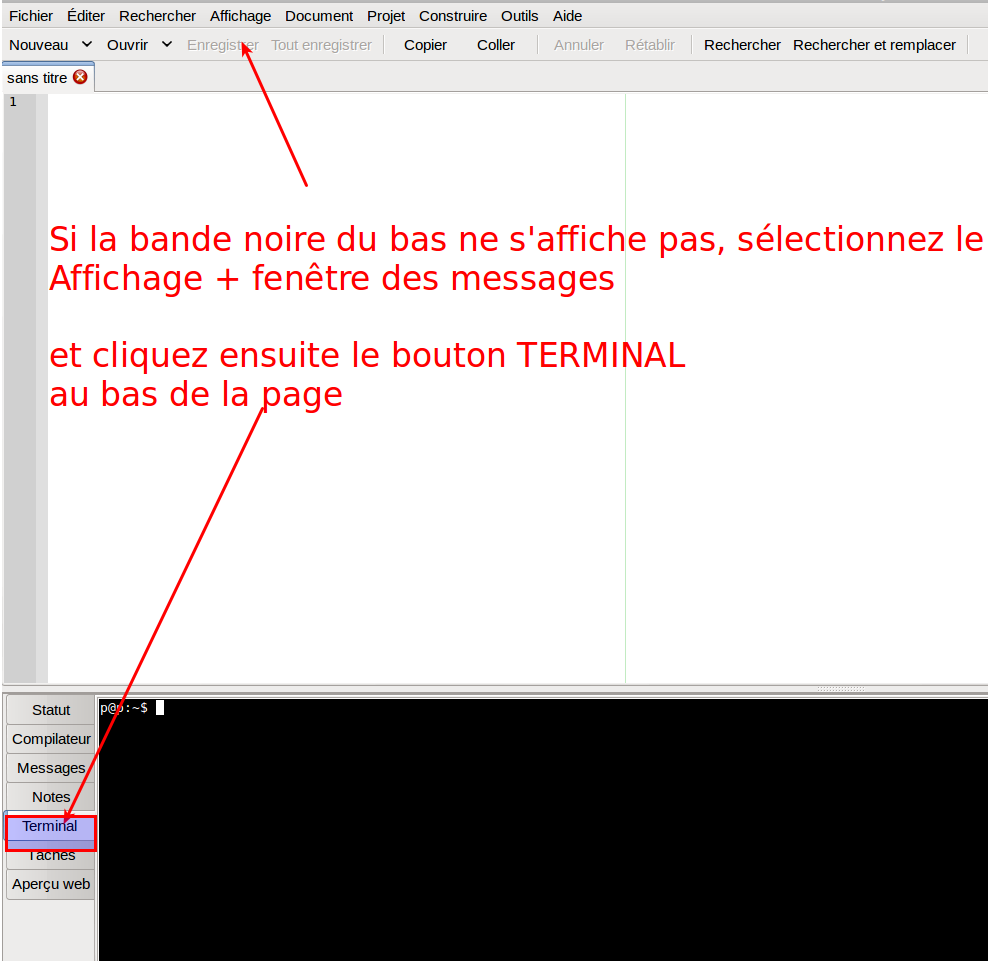 - Utilisez au besoin les touches ALT GR + , afin d'écrire le signe <
